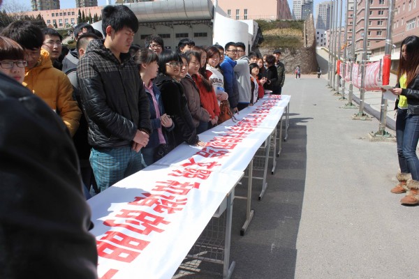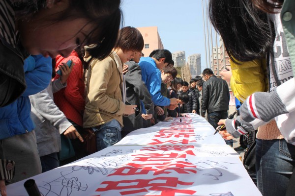 3月28日,必赢官网在校的全体学生在学院操场举行“学生自律约定15条”签名活动。