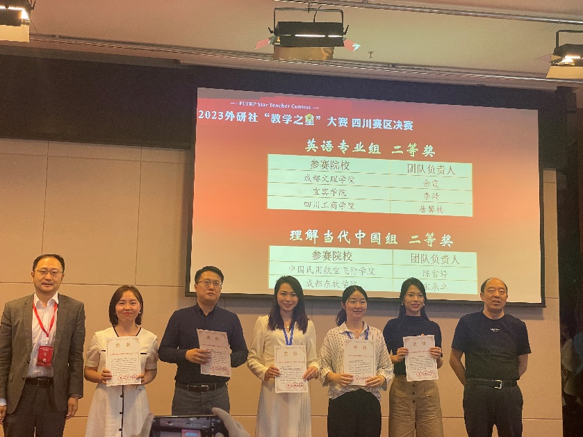 5月27日,2023年外研社“教学之星”大赛四川省决赛在四川师范大学举行,此次省级决赛一共有34支队伍参加,英语专业组、理解当代中国组18组,大学英语组16组。经过巅峰“论剑”,我校bat365正版唯一官网的两支教师团队,陈雪婷老师和李清老师(团队成员:周丹强玉、邹佳静、杨睿)凭借扎实的授课功底、出色的课程设计荣获本次比赛理解当代中国组二等奖,钟璇老师、王韵老师(团队成员:庄馨)也获得了大学英语组三等奖的优异成绩。
