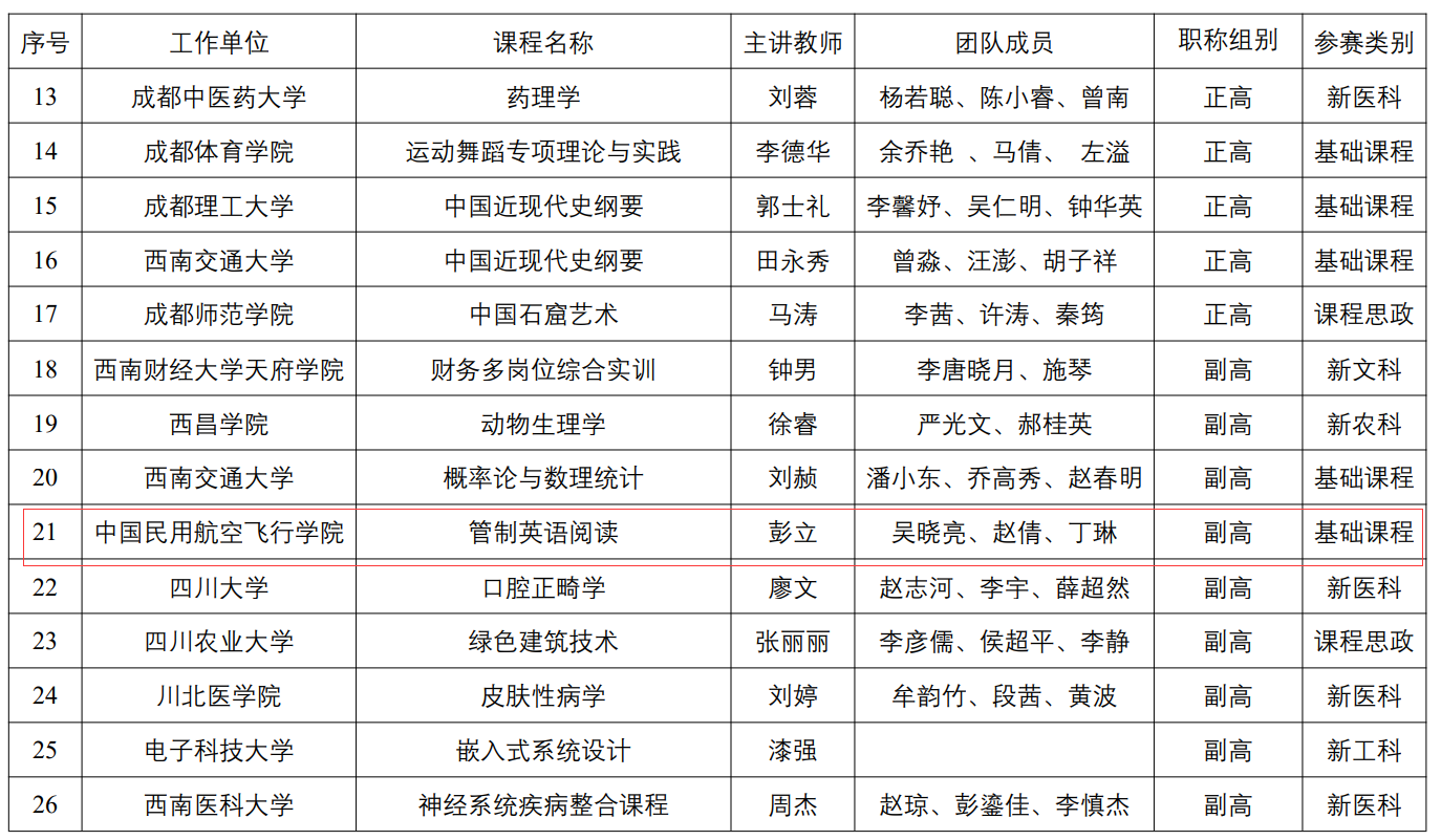 近日,四川省教育厅公布了《第三届四川省普通本科高校教师教学创新大赛获奖名单的通知》,bat365正版唯一官网彭立副教授教学团队领衔的管制英语阅读课程荣获副高组二等奖!教学团队还包括吴晓亮老师,赵倩老师以及丁琳老师。