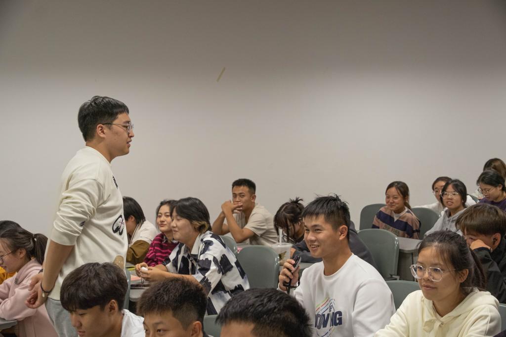 讲座开始,心理测评中心的张书宇老师用生动活泼的事例和风趣幽默的语言鼓励同学们思考沟通的意义,随后引出“非暴力沟通”这一概念。张老师将“非暴力沟通”分为观察、感受、需要和请求四个要素,深度剖析了同学们在人际交往中的心理变化和心理需求,如何判断观察和评论、分辨感受与想法,帮助同学们更好地表达自己,减少内耗。最后,张老师邀请大家上台参与互动小游戏,同学们在趣味十足的小游戏中体会到正确交流与沟通的重要性。