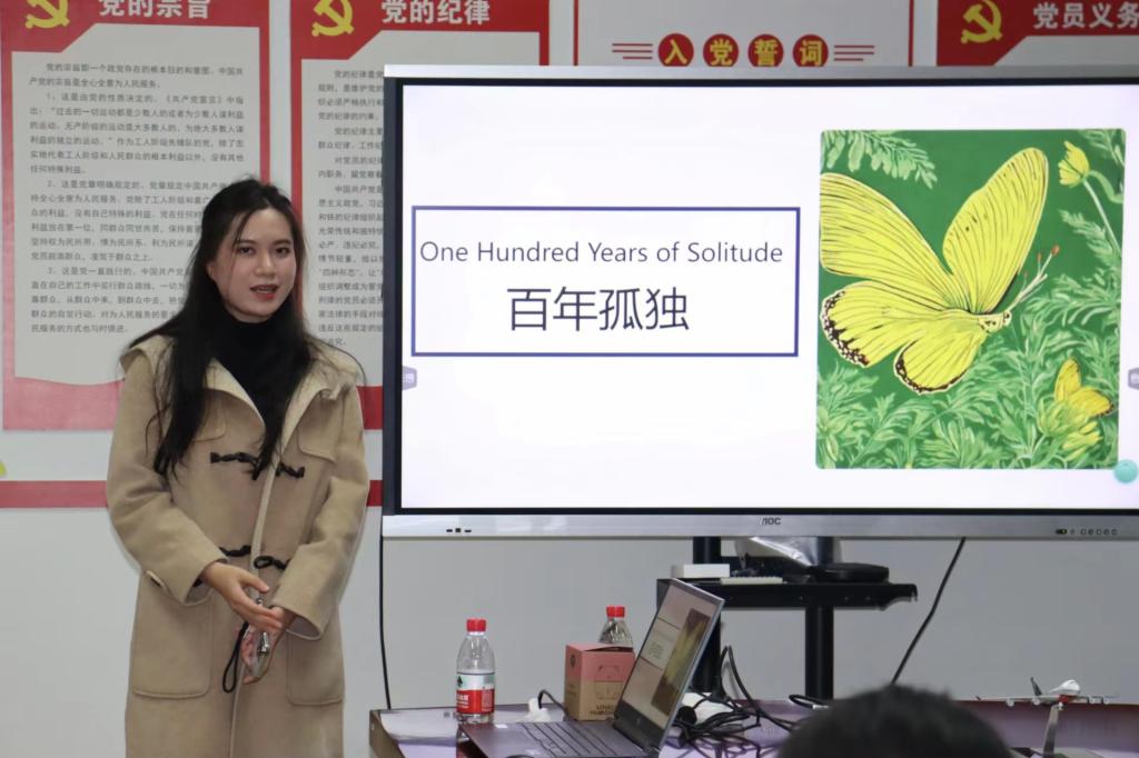本次活动主要分享了三本经典著作。分别是郝美茹,丁羽羽同学带来的《爱玛》;苏欣悦同学带来的《百年孤独》以及韩天娇、彭惠娟同学为我们带来的《追风筝的人》。同学们中英结合,引经据典,结合影像资料,将故事情节向在场同学们娓娓道来;他们在分享自己阅读感悟的同时,也和在场的同学们共同感受文字的魅力,体会主人公的颠沛流离、悲欢离合。令在场的老师和同学们无不为之触动。
