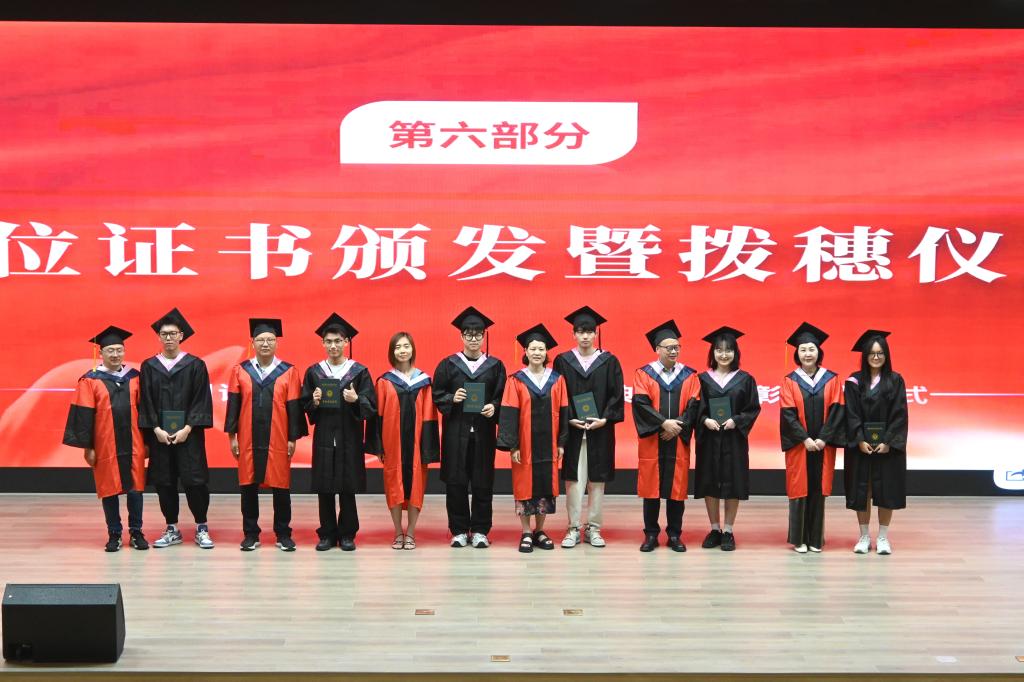 穗动礼成,学途圆满。身着学位服的毕业生们怀着激动的心情,有序列队上台,老师们轻轻将学位帽上的流苏从右侧拨至左侧,象征着毕业生们从“求学者”到“获得者”的身份转变,也寓意着学业圆满、开启新程,表达着bat365正版唯一官网的领导和老师们对于毕业生的深切祝福。