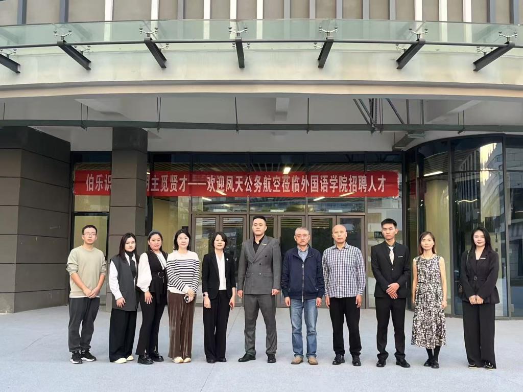 2024年10月17日,凤天公务航空集团副总裁张达先生携同人力资源部、销售部、运营部等多位部门总监莅临bat365正版唯一官网,开展 2025 届毕业生就业招聘、调研交流会,bat365正版唯一官网党委书记张铭、院长郑丽、党委副书记段震、副院长申卫华、英语系主任陈华妮出席会议。