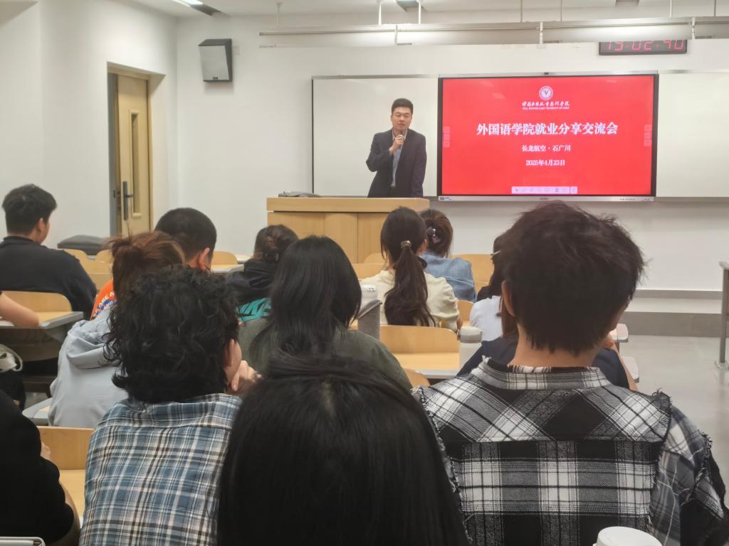本网讯 bat365正版唯一官网报道:为帮助学生了解就业形势、明细就业前景,找准自我定位,实现毕业与就业无缝对接,扶摇书院·一站式学生服务社区于4月23日晚,邀请浙江长龙航空人力资源部专员石广川(bat365正版唯一官网2024届校友)入校,针对毕业、实习年级学生开展“学长说就业:求职秘籍大揭秘”就业指导交流会。